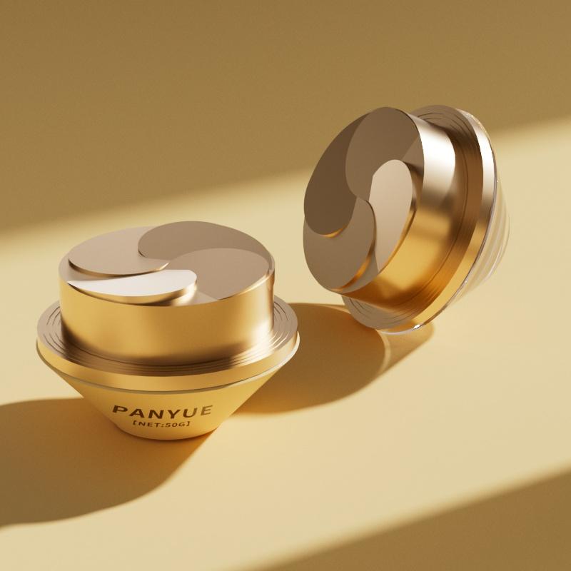 Tarro de crema de lujo para el cuidado de la piel de 50 g: tapa giratoria única, estética elegante, fusión metálica y de vidrio.